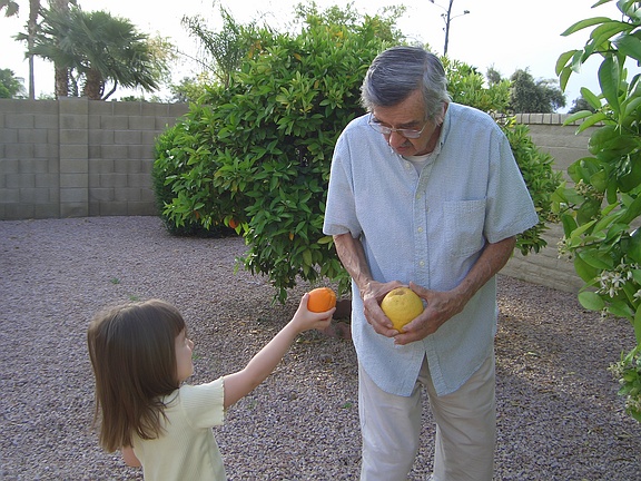 I'm helping Grandpa pick his oranges!