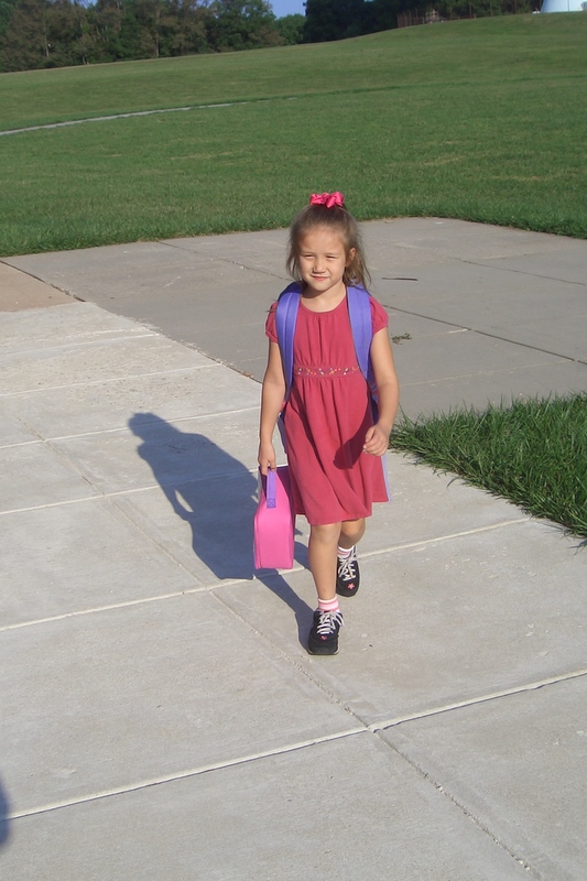 Alexa walking to her first day of school.