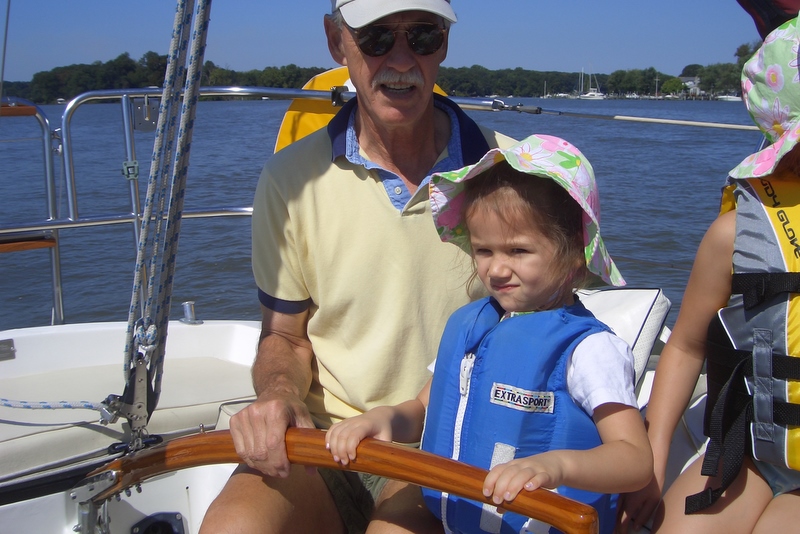 Our neighbor John took us sailing. I drove the boat!